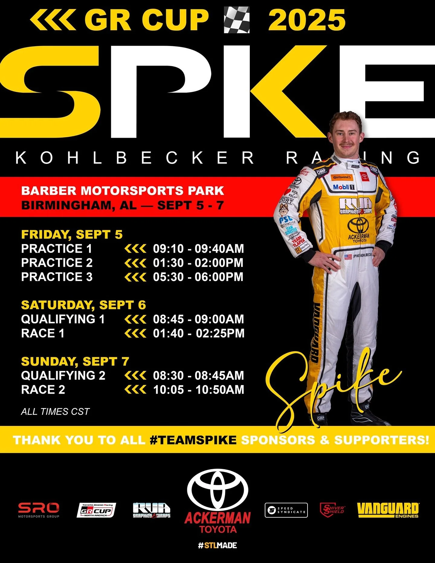 “I have been watching Spike for three years, he is going to become the next superstar. He already has the winning principles in his driving portfolio ... he just needs to adjust those principles to more powerful and faster race cars.”